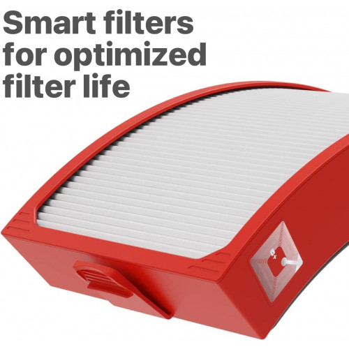 El indicador luminoso de calidad del aire le informa en tiempo real de la calidad del aire en su espacio, y el purificador cuenta con una de las calificaciones de eficiencia energética más altas, lo que le permite ahorrar dinero en la factura de la luz. La aplicación AirVisual le da un control total sobre el purificador, permitiéndole elegir entre ocho ajustes de velocidad del ventilador, establecer sesiones de limpieza con programación avanzada o elegir entre tres modos inteligentes automáticos basados en sensores. Los filtros inteligentes están diseñados para optimizar la vida útil del filtro, por lo que podrá disfrutar de aire limpio durante más tiempo sin tener que preocuparse por las sustituciones frecuentes.