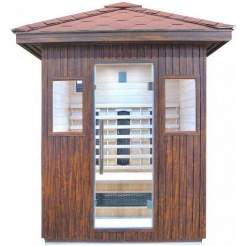 Sauna de infrarrojos 153 x 110 cm con techo adecuado para instalación en exteriores cromoterapia